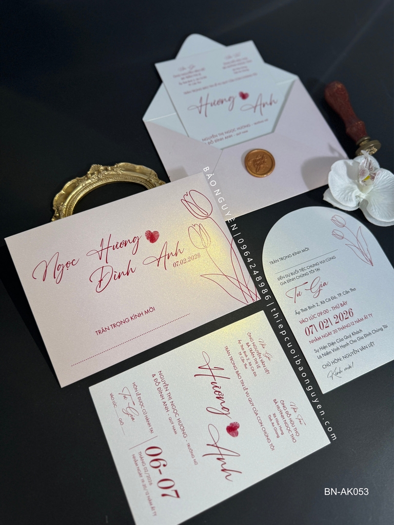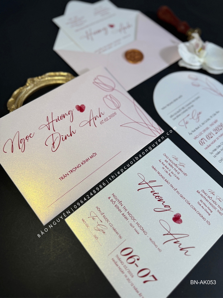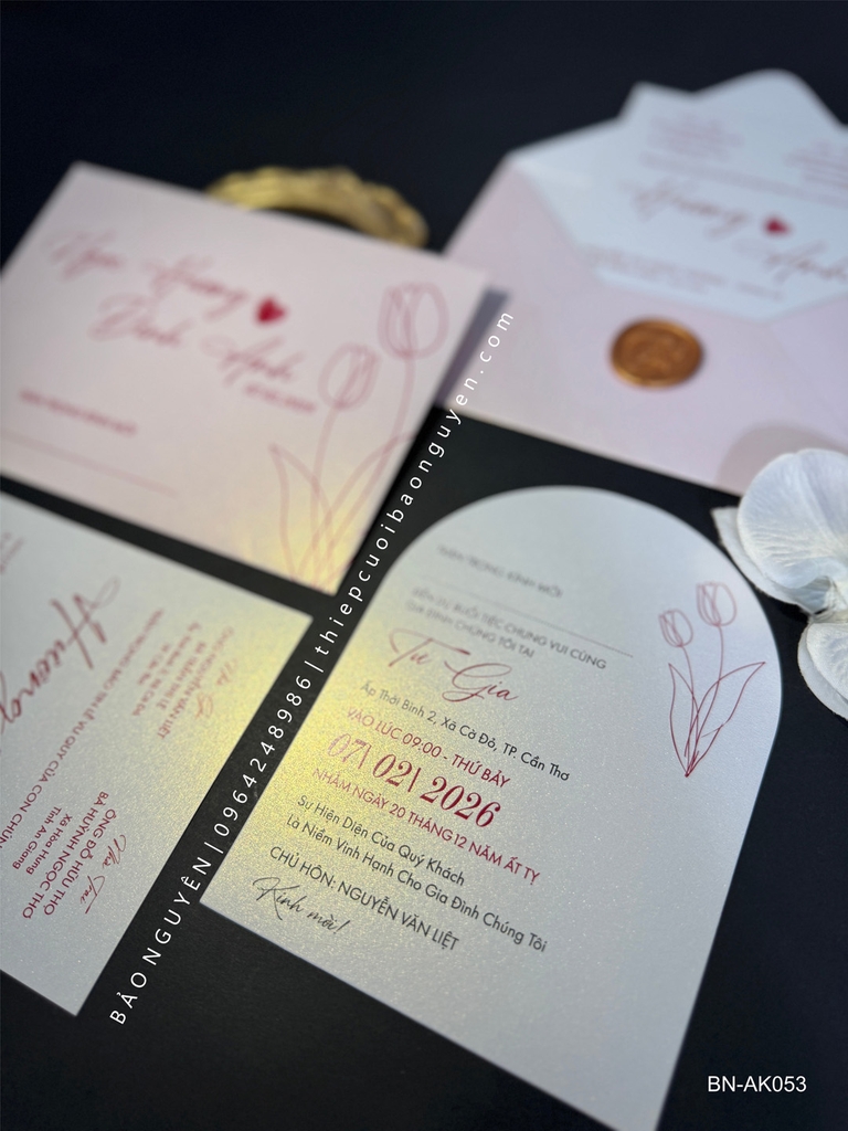 (BN-AK053) Thiệp Cưới Giấy Ánh Kim Thơm