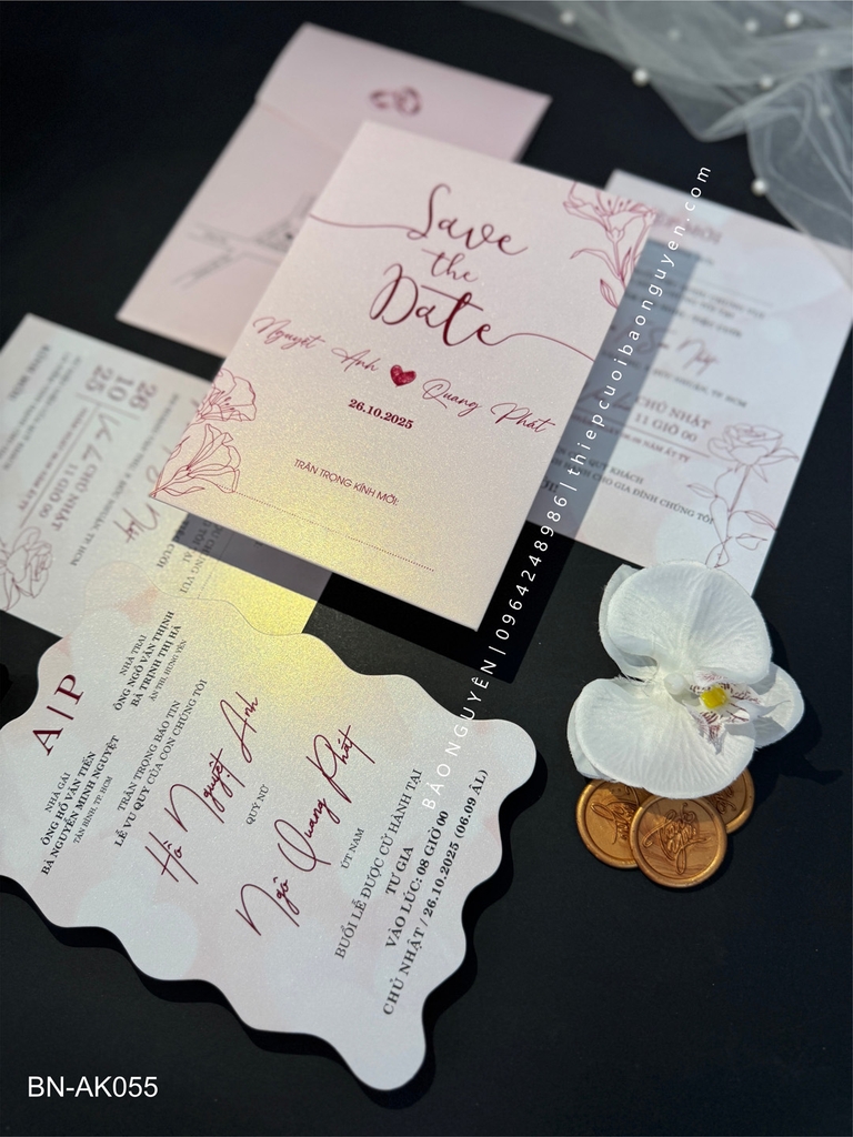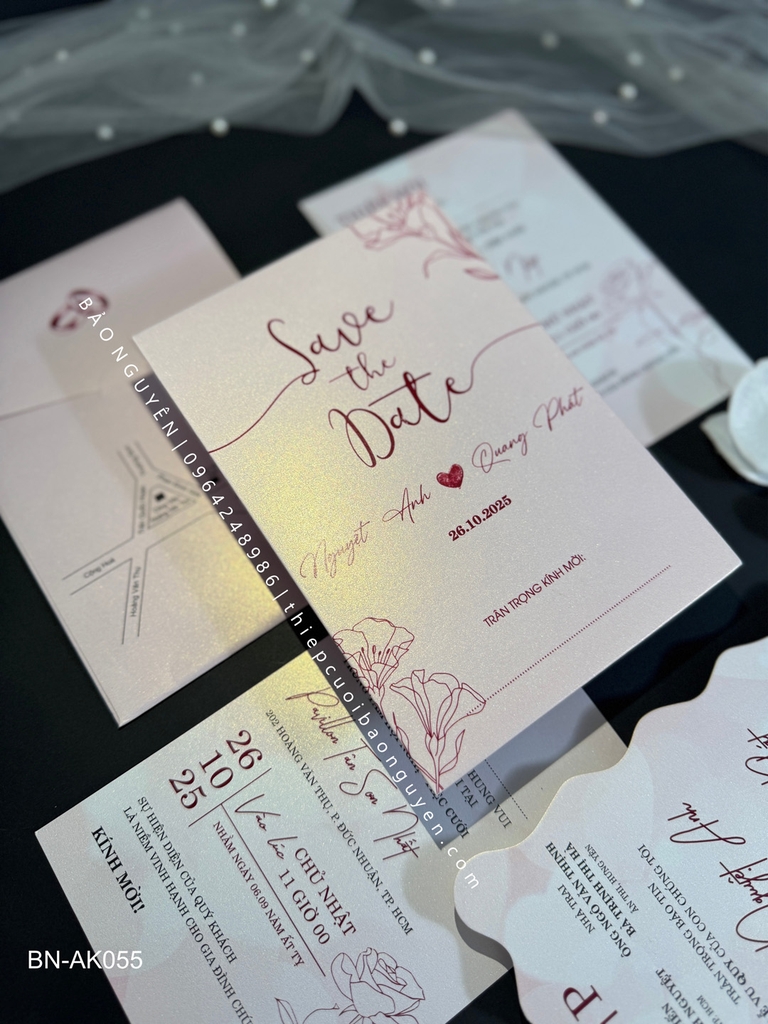 (BN-AK055) Thiệp Cưới Giấy Ánh Kim Thơm