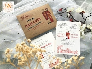 (BN-K03) Thiệp Cưới giấy Kraft hình chibi áo dài truyền thống Khuyến mại - ưu đãi