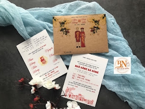 (BN-K04) Thiệp Cưới giấy Kraft hình chibi chibi áo dài truyền thống Khuyến mại - ưu đãi