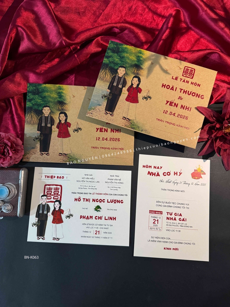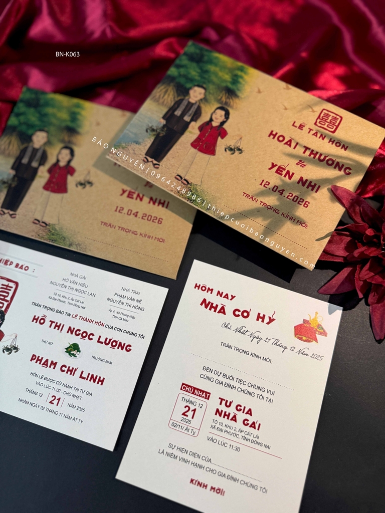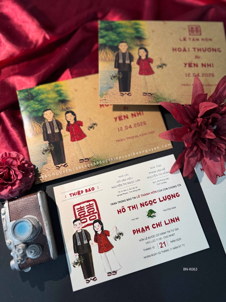 (BN-K063) Thiệp Cưới giấy Kraft hình chibi