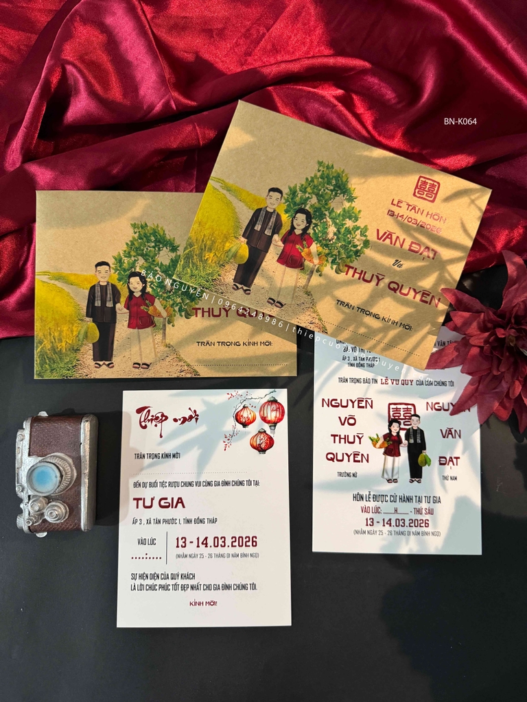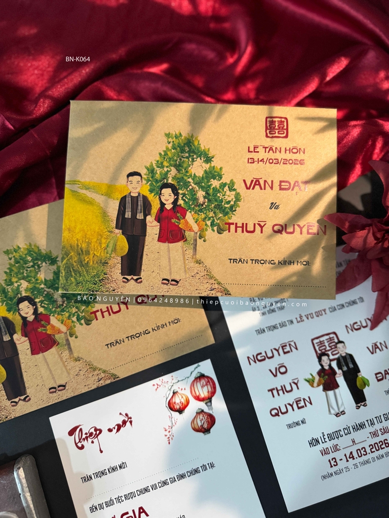(BN-K064) Thiệp Cưới giấy Kraft hình chibi Khuyến mại - ưu đãi