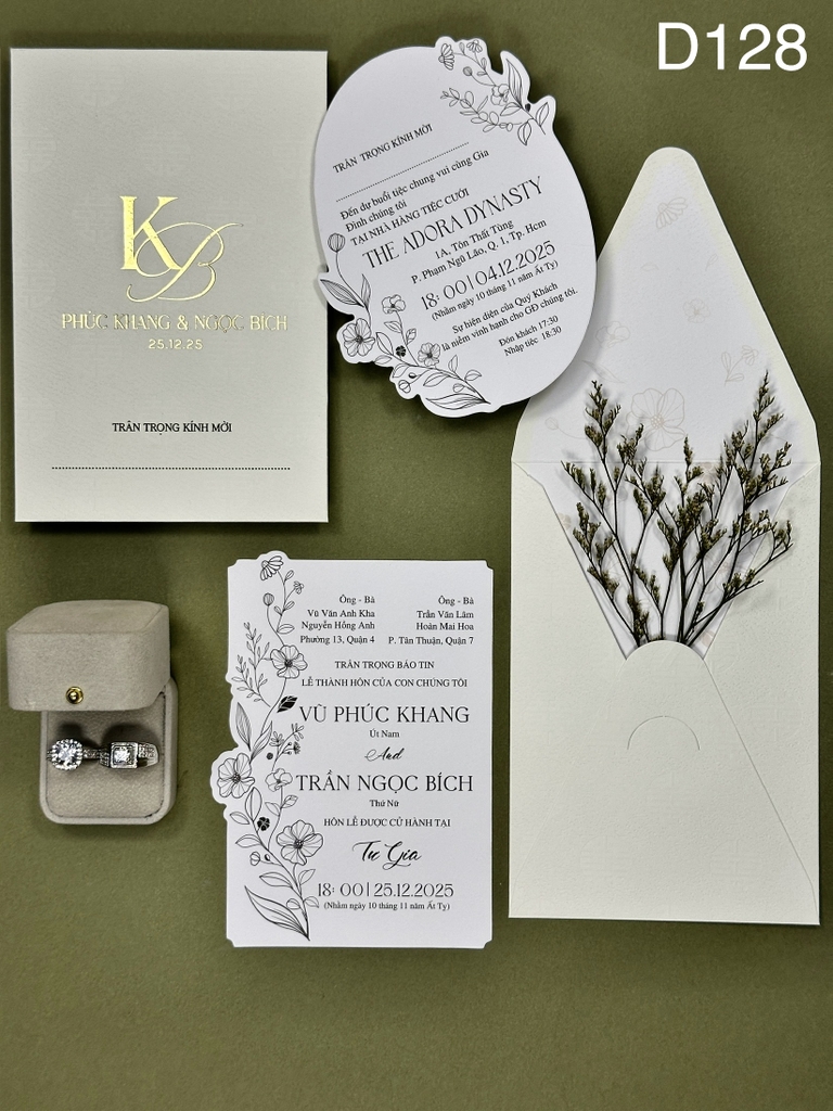 (D128-RUỘT RỜI) Thiệp Dập Nổi Ép Kim Cao Cấp