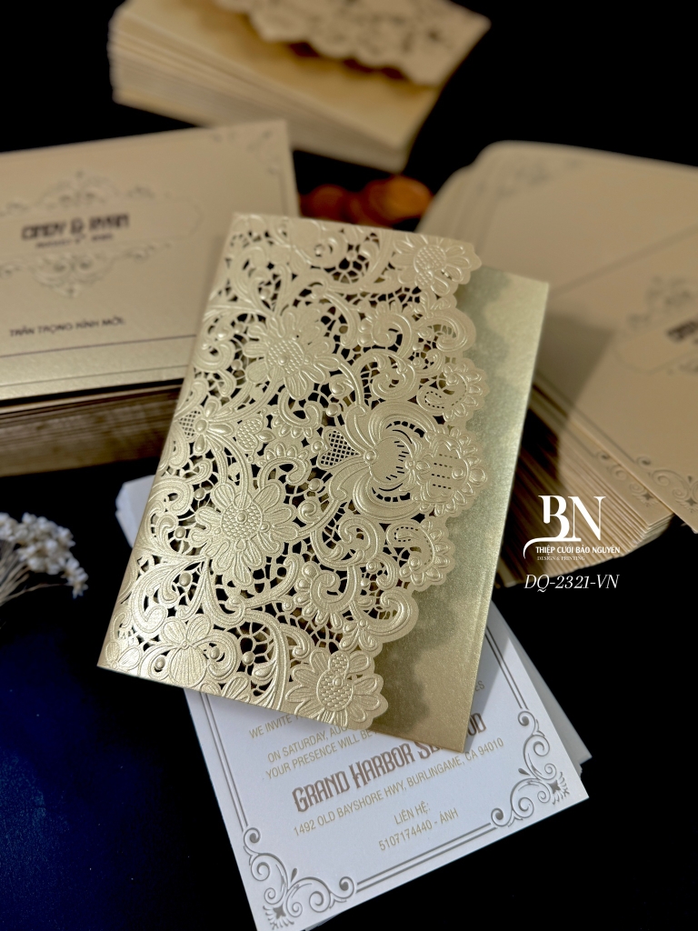 * In lún nhũ vàng + ép kim nhũ nâu