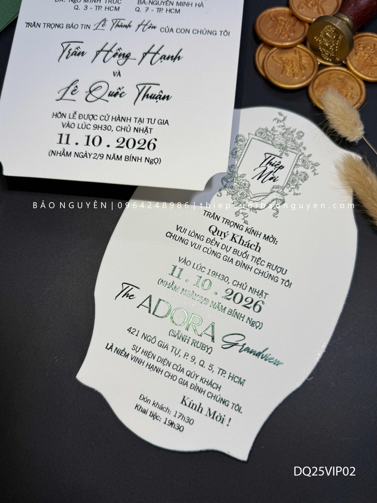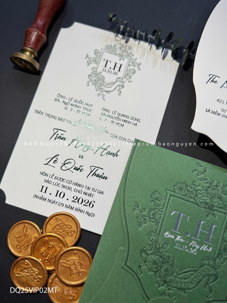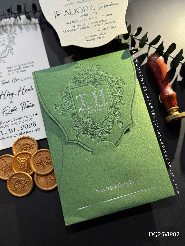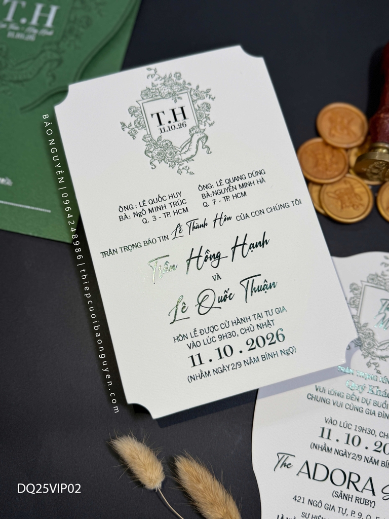 (DQ25VIP02MT- XanhForest) Thiệp Cưới  Cao Cấp Ép Kim Khuyến mại - ưu đãi
