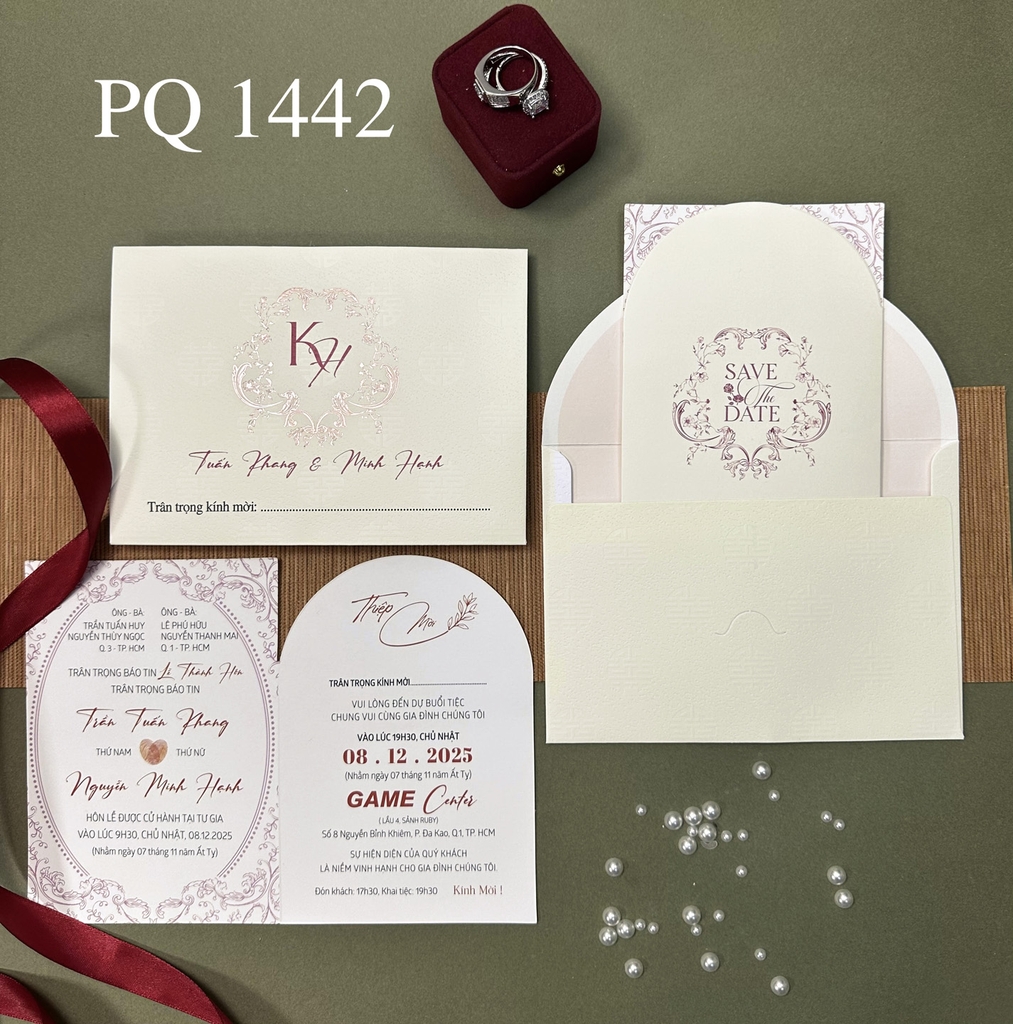 (PQ 1442) Thiệp Cưới Hiện Đại Có Ép Kim