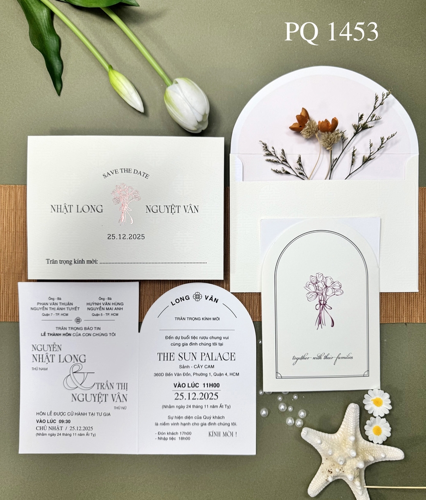(PQ 1453) Thiệp Cưới Hiện Đại Có Ép Kim