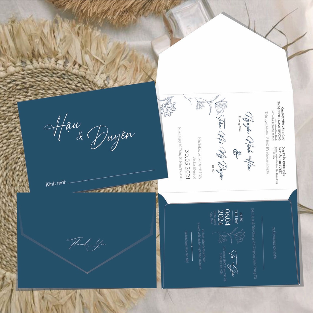 (RR3IN1 - BN028) Thiệp Cưới Gập 3 Có Bao Thư 3IN1 Khuyến mại - ưu đãi