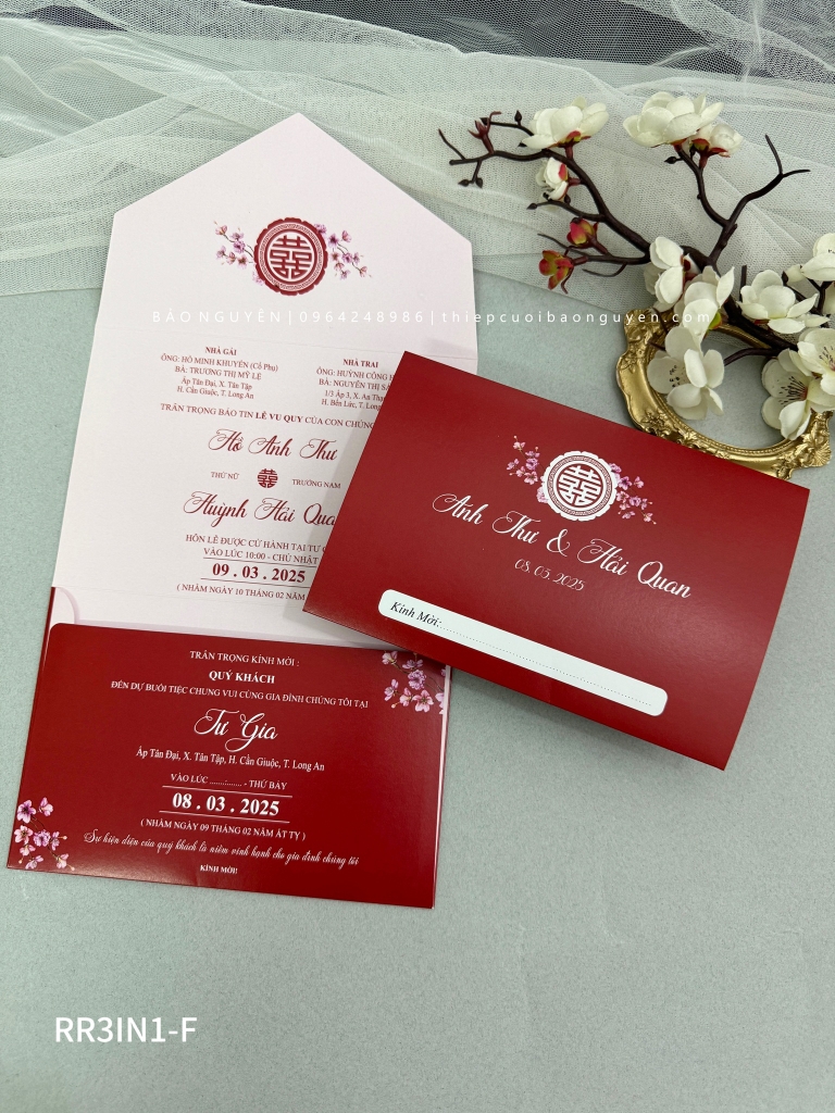 (RR3IN1 - BN038 ĐỎ) Thiệp Cưới Gập 3 Có Bao Thư 3IN1 Khuyến mại - ưu đãi