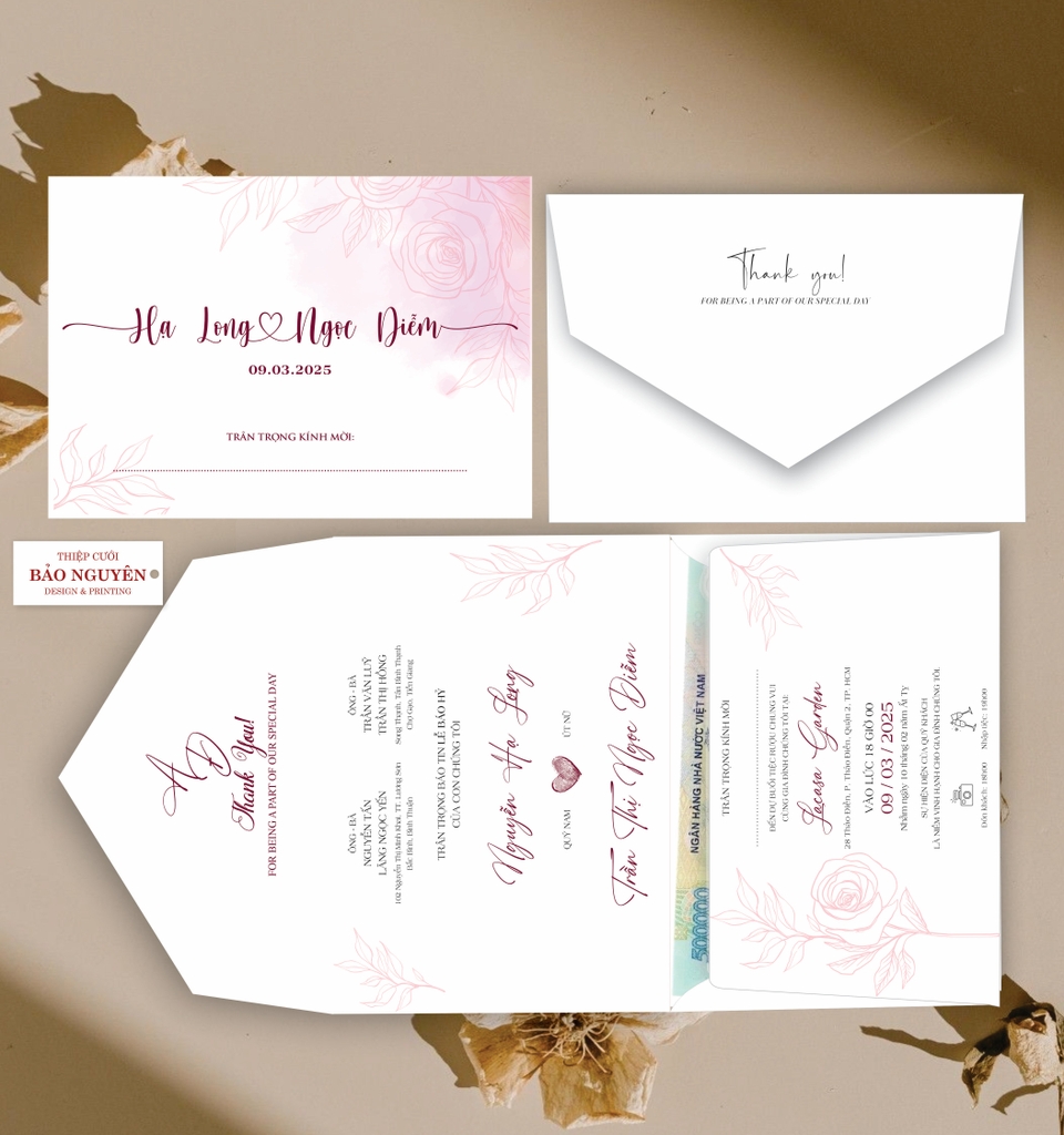 (RR3IN1 - BN051) Thiệp Cưới Gập 3 Có Bao Thư 3IN1 Khuyến mại - ưu đãi