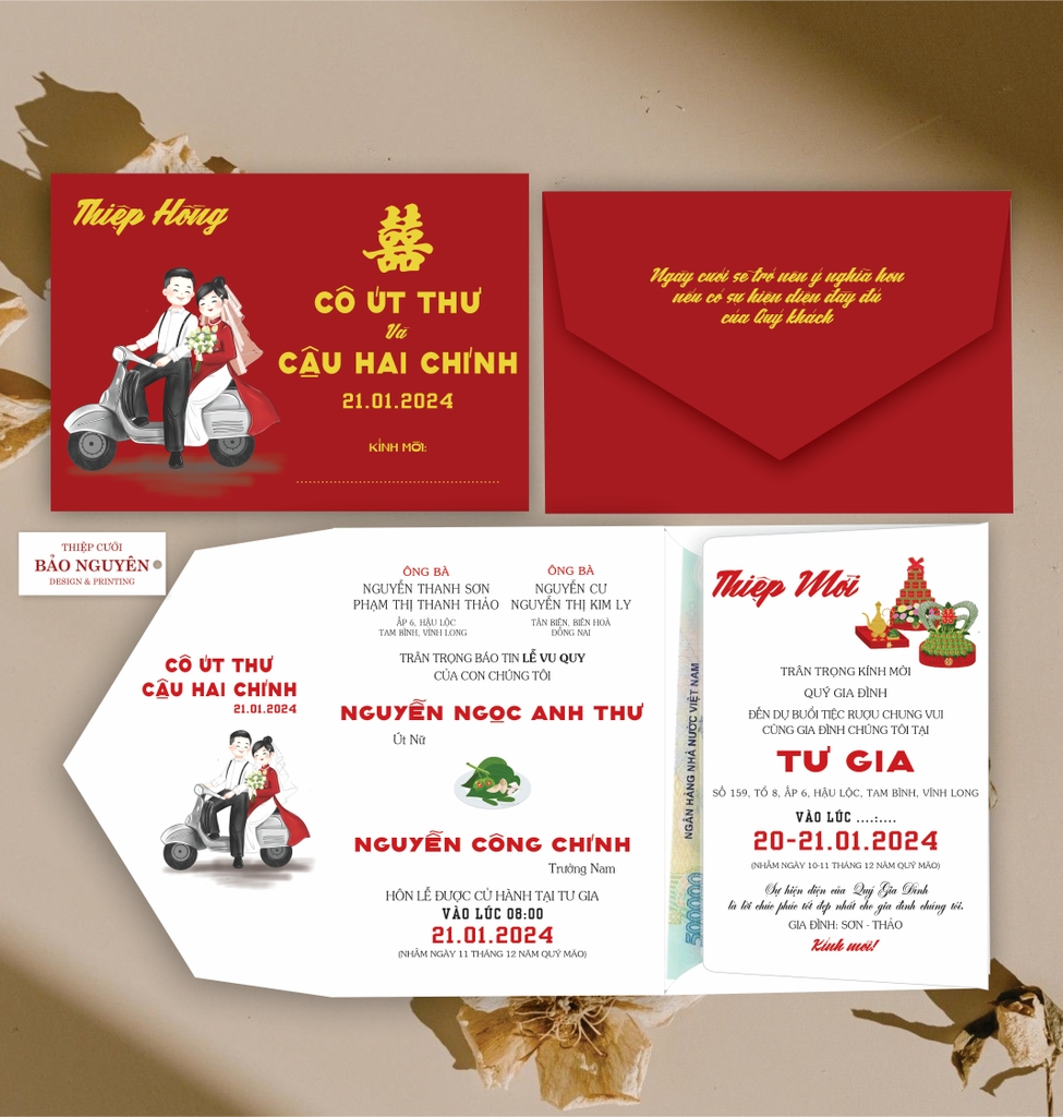 (RR3IN1 - BN055) Thiệp Cưới Gập 3 Có Bao Thư 3IN1 Khuyến mại - ưu đãi