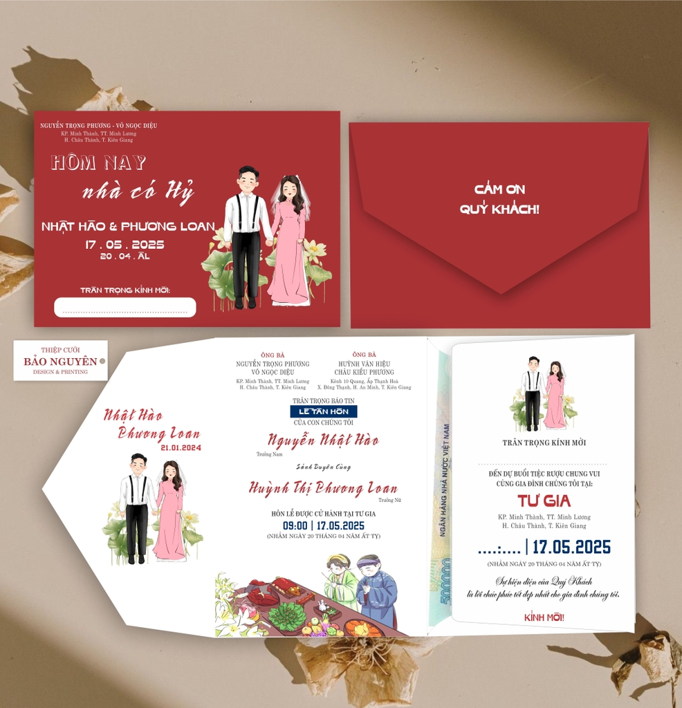 (RR3IN1 - BN056) Thiệp Cưới Gập 3 Có Bao Thư 3IN1 Khuyến mại - ưu đãi