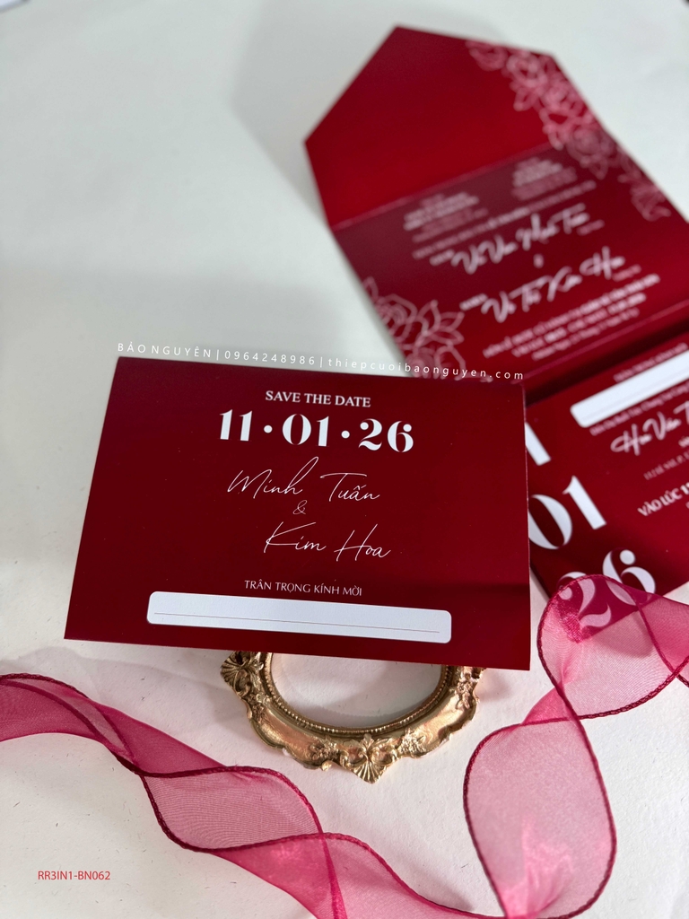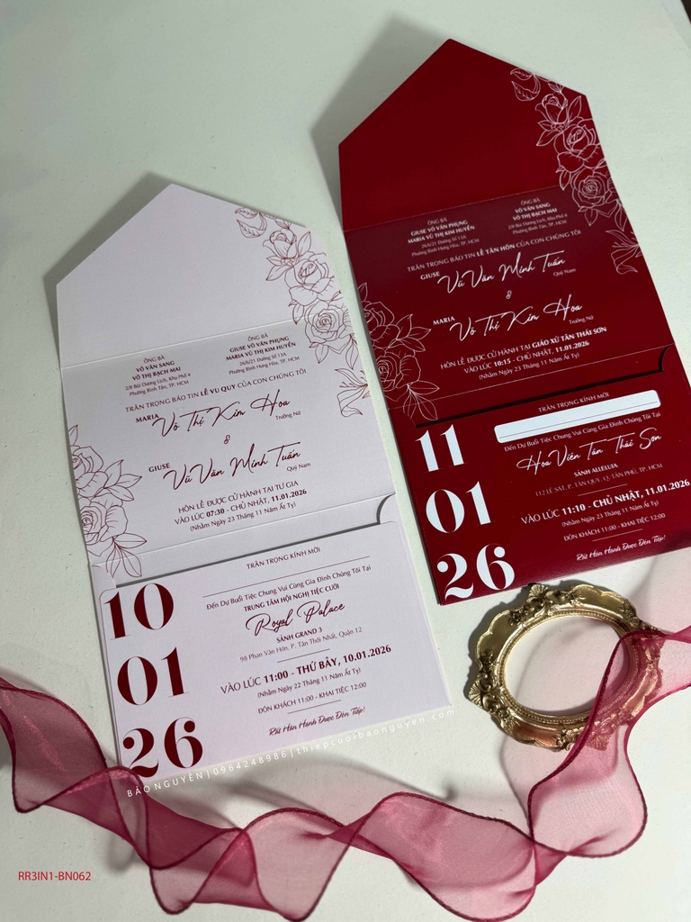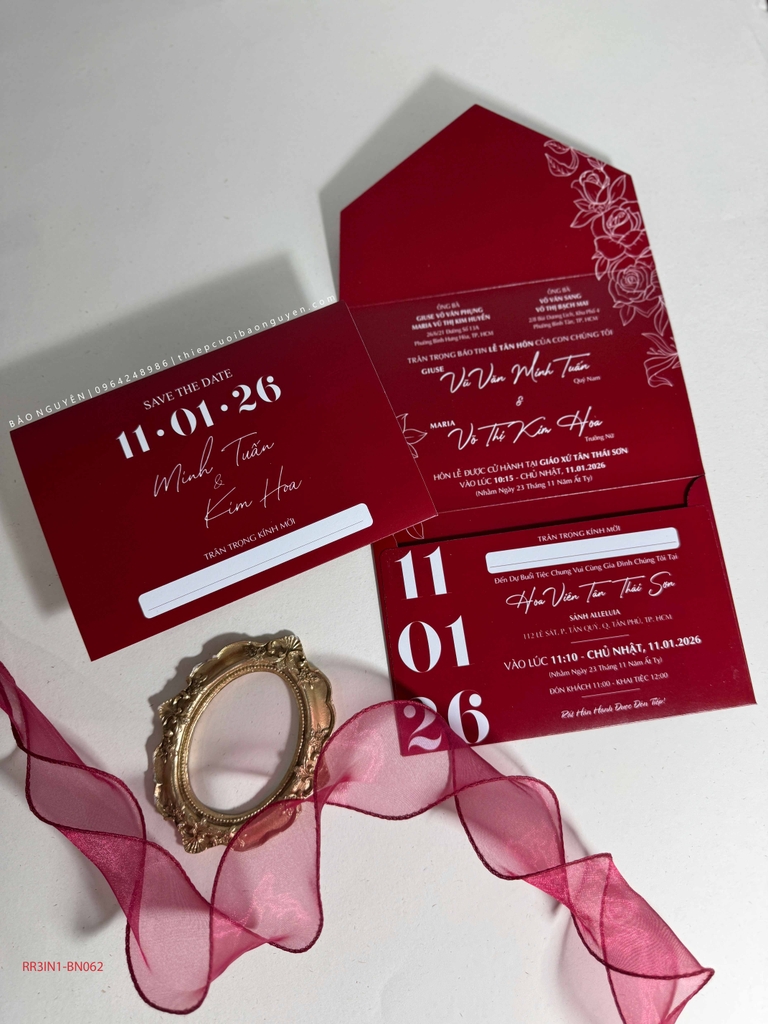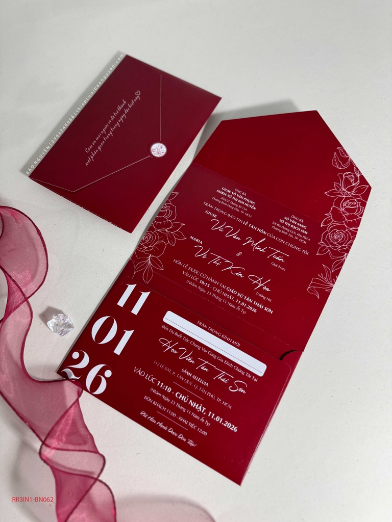 (RR3IN1 - BN062) Thiệp Cưới Gập 3 Có Bao Thư 3IN1 Khuyến mại - ưu đãi