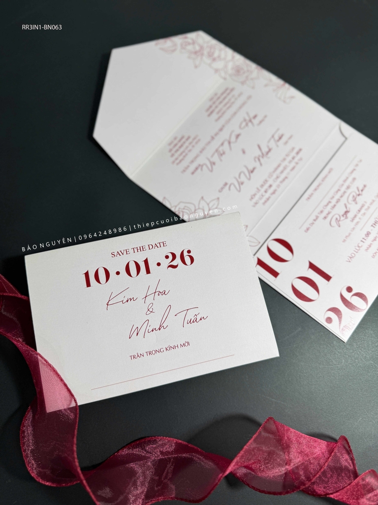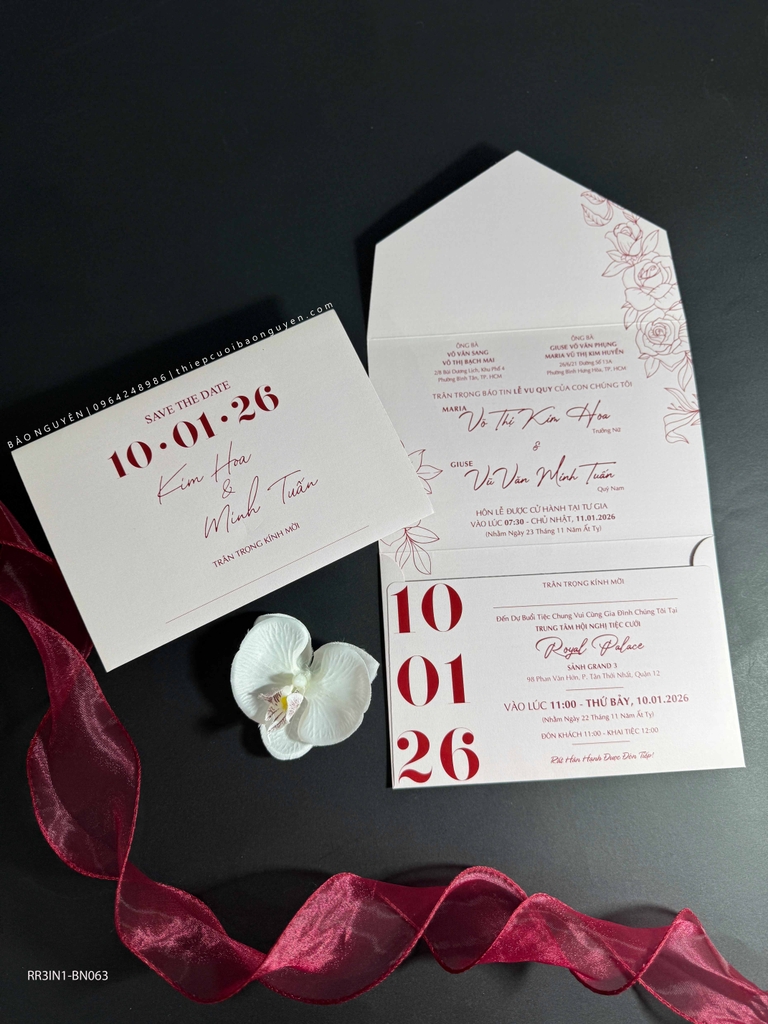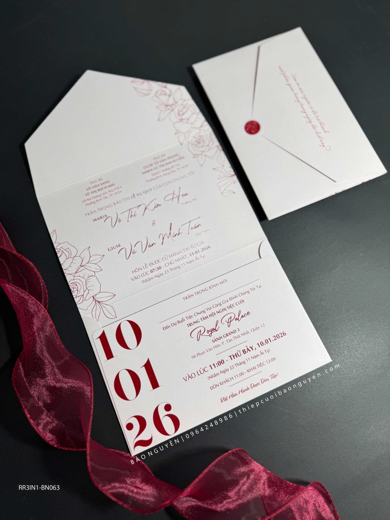 (RR3IN1 - BN063) Thiệp Cưới Gập 3 Có Bao Thư 3IN1 Khuyến mại - ưu đãi