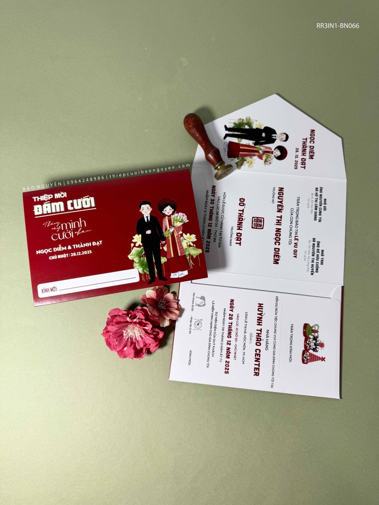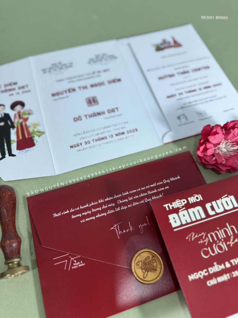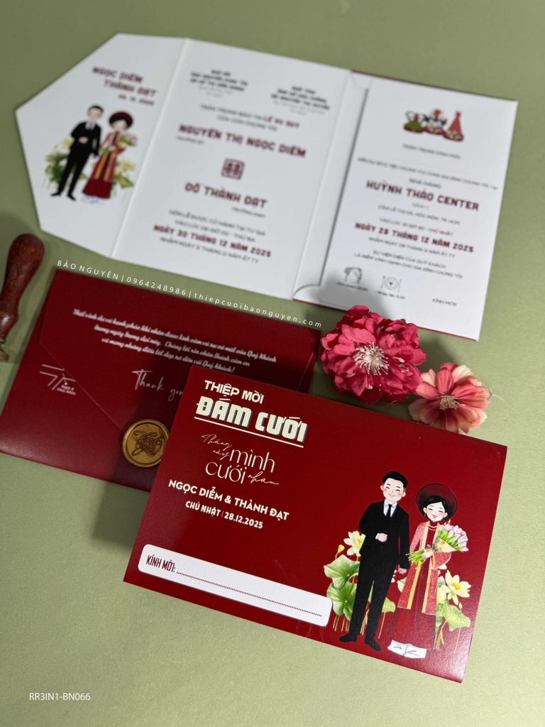 (RR3IN1 - BN066) Thiệp Cưới Gập 3 Có Bao Thư 3IN1 Khuyến mại - ưu đãi