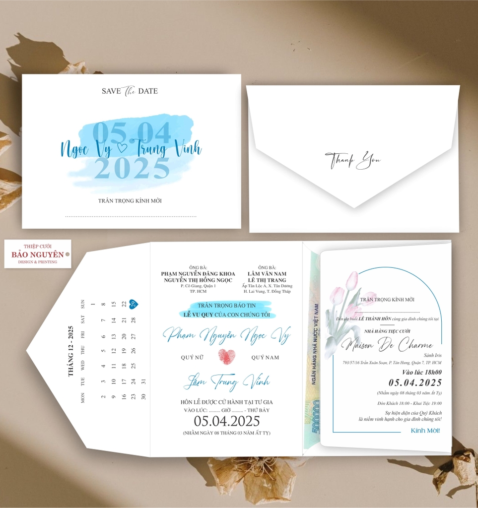 (RRR3IN1 - BN049) Thiệp Cưới Gập 3 Có Bao Thư 3IN1 Khuyến mại - ưu đãi